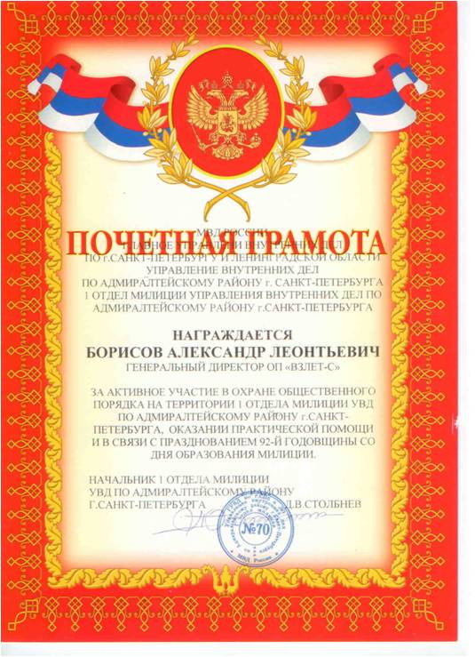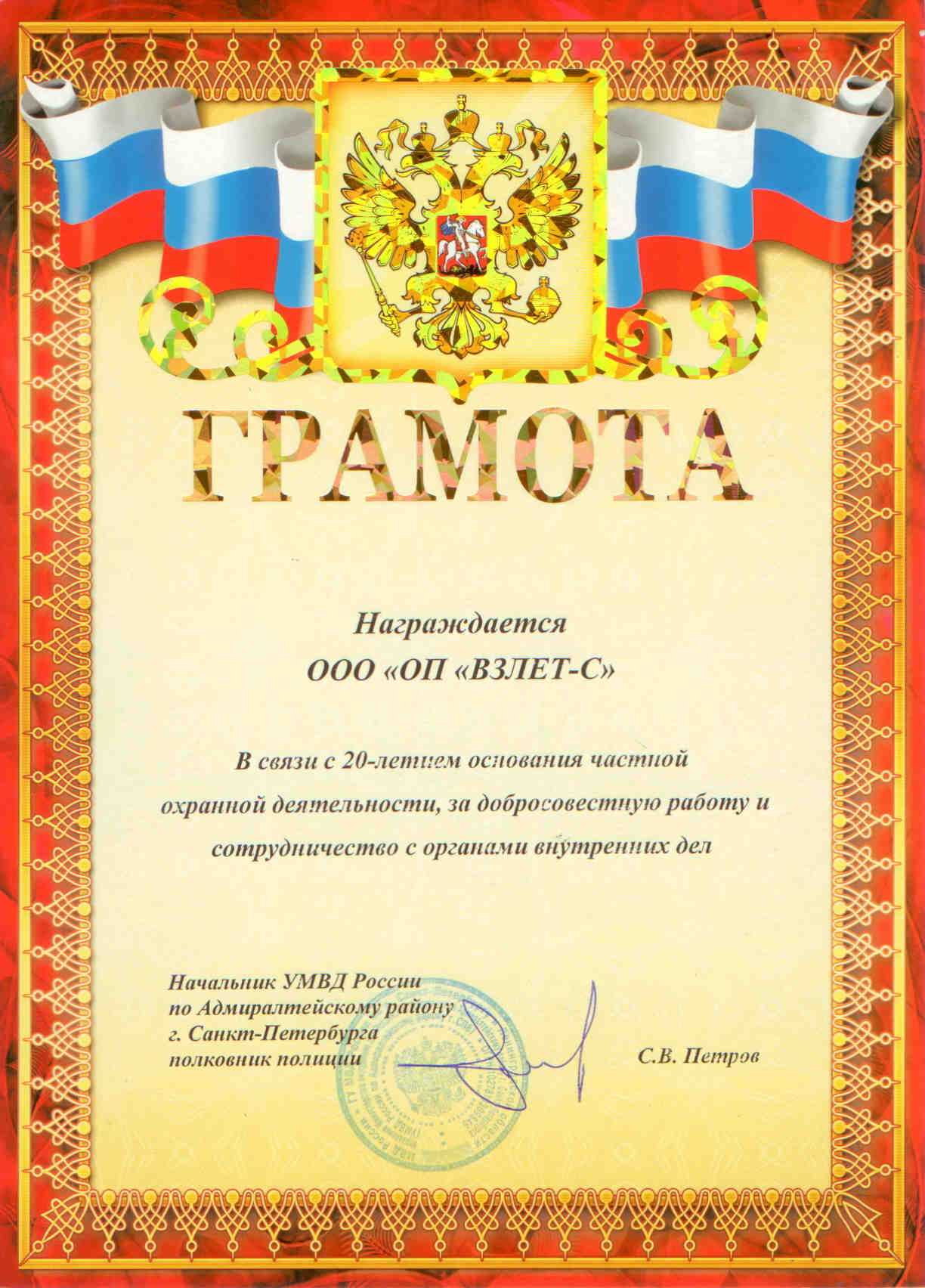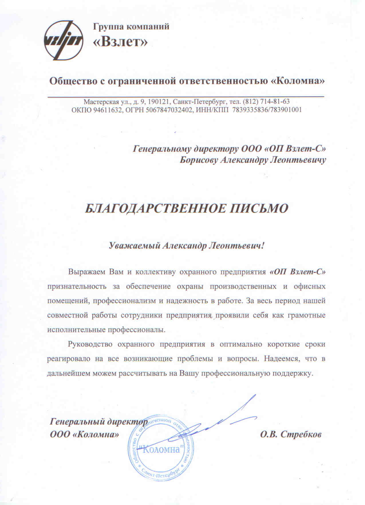 Охранное предприятие «Взлет-С» образовалось 14 мая 2001 года. Генеральный директор предприятия — Борисов
